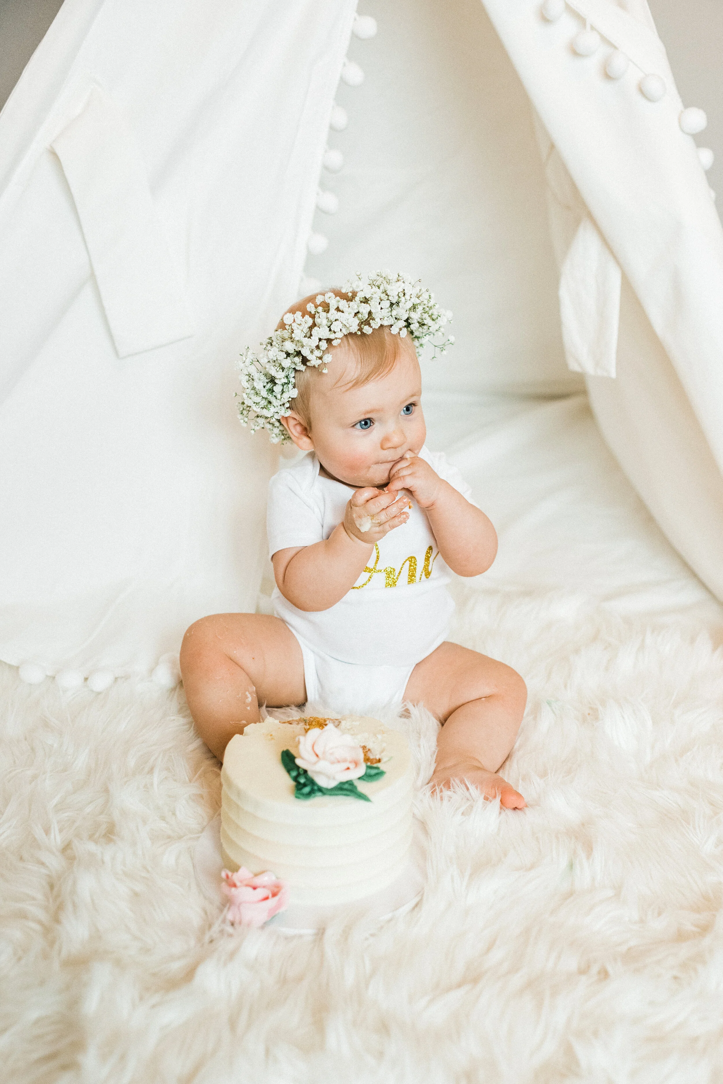 Sweet Ava James was born 10 weeks early and had a very scary first few months of life (read more about her story here) which makes this FIRST BIRTHDAY session so incredibly special! Ava’s mama thought of every little detail including a flower crown, pearls, tutus, white tent for her bedroom, matching headbands, and a darling smash cake. Daddy and grandparents were also a part of this session and everyone was so thrilled to watch this healthy and thriving little girl take her first bites of cake. I enjoyed every minute with this precious little one and look forward to future sessions! xo